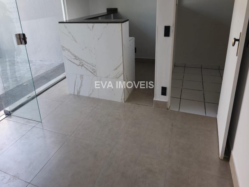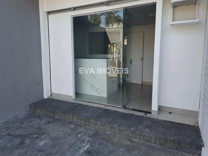 Sala comercial térrea com cerca de 80 m² contendo recepção, sala, copa, banheiro social e área de serviço.