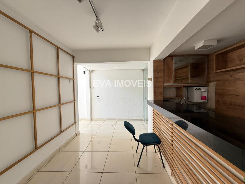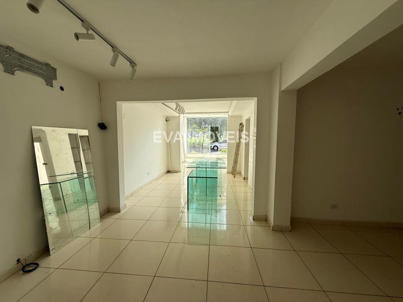 Loja comercial com pé direito duplo, salas, copa, banheiro.